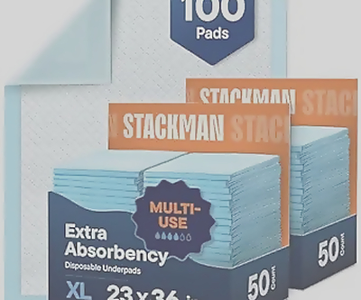 100-Pack of 23\"x36\" super absorbent disposable underpads, ideal for adult incontinence, pet training, and more.
