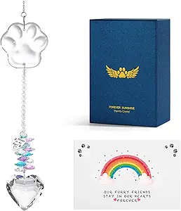 This beautiful Pet Memorial Suncatcher is a heartfelt tribute to your beloved pets who have crossed the rainbow bridge. Made with high-quality materials, it features intricate designs that catch the light beautifully, creating a warm and comforting atmosphere in your home. Ideal for both dogs and cats, this suncatcher serves as a unique remembrance gift for those experiencing the loss of a furry friend. It is perfect for pet sympathy, bereavement gifts, and offers a soothing reminder of the joy your pets brought into your life.