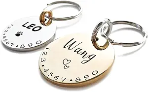 Keep your furry friends safe with these personalized ID tags for cats and dogs. Made from shiny stainless steel, these custom engraved tags feature lovely symbols and can be tailored with your pet\'s name. The simple yet stylish design makes them a perfect accessory for extra small pets, ensuring they are both fashionable and identifiable. Ideal for preventing loss, these tags can be easily attached to collars or necklaces, providing peace of mind for pet owners.